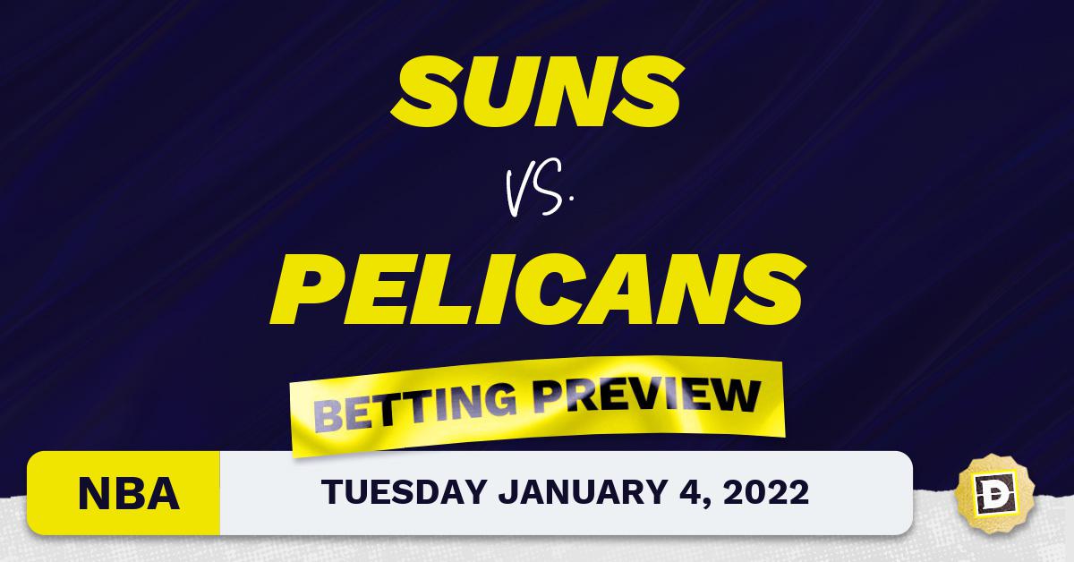 Suns vs. Pelicans Predictions and Odds - Jan 4, 2022 | Dimers Suns vs. Pelicans Score Prediction. Dimers.com's predicted final score for Phoenix vs. New Orleans at Smoothie King Center on Tuesday has the Suns winning 116-110. Use our dynamic widget below to see the latest Spread, Over/Under and Moneyline probabilities and odds for the game, and click or tap on See Matchup for more.