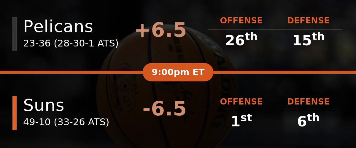 New Orleans Pelicans at Phoenix Suns - 2/25/22 NBA Picks ... Phoenix Suns vs. New Orleans Pelicans 2/25/22: NBA Basketball free preview, analysis, prediction, odds and pick against the spread.