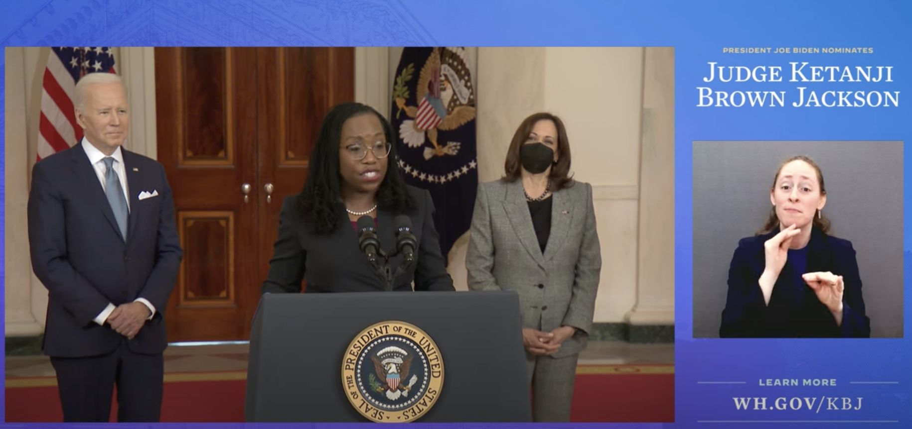 Biden nominates Judge Ketanji Brown Jackson to be first ... Judge Ketanji Brown Jackson, with President Joe Biden, speaks after she was nominated for Associate Justice of the Supreme Court, in the Cross Hall of the White House, Feb. 25, 2022.