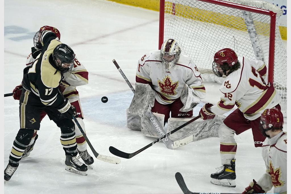 State-Title Bid Ends Early For Maple Grove Girls Hockey Team MAPLE GROVE, MN — The Maple Grove girls hockey team's quest for a state title came to an end in the quarterfinal round Thursday after a 2-1 loss to Gentry Academy. Crimson junior Stella Retrum ...