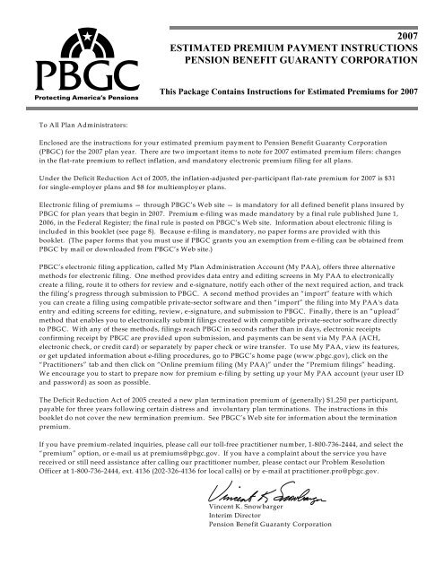 Home Page | Pension Benefit Guaranty Corporation WASHINGTON, D.C. — The Pension Benefit Guaranty Corporation (PBGC) announced today that it has approved the Special Financial Assistance (SFA) application submitted by the Road Carriers Local 707 Pension Plan (Local 707 Plan). The Local 707 Plan, based in Hempstead, New York, covers 3,804 participants in the transportation industry. Pension Benefit Guaranty Corporation (PBGC) hiring Actuary ... The position is located in the Pension Benefit Guaranty Corporation's (PBGC), Office of Negotiations and Restructuring (ONR), Negotiations and Restructuring Actuarial Department (NRAD ... 29 U.S. Code § 1302 - Pension Benefit Guaranty Corporation ... The Pension Benefit Guaranty Corporation shall contract with a capable agency or organization that is independent from the Corporation, such as the Social Security Administration, to conduct an annual peer review of the Corporation's Single-Employer Pension Insurance Modeling System and the Corporation's Multiemployer Pension Insurance ... Pension Benefit Guaranty Corporation Insurance Programs ... Figure 10: Pension Benefit Guaranty Corporation's (PBGC) Net Financial Position of the Single-Employer and Multiemployer Programs Combined, Fiscal Years 2000 through 2020 Image If the multiemployer program becomes insolvent, participants in insolvent pension plans that receive financial assistance from PBGC will receive a small fraction of ...